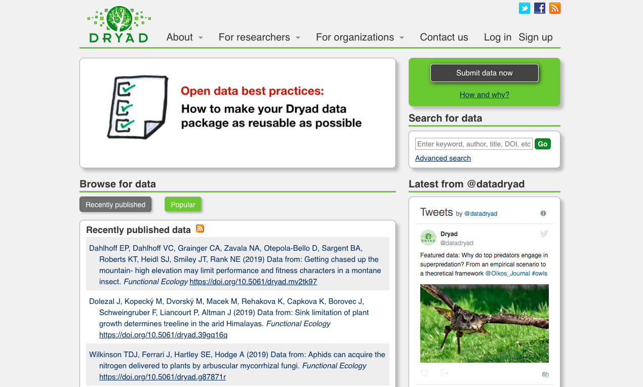 Datatype repositories cater to a very small subset of data formats, and can sometimes lack links to the publications and other datasets that give them much-needed context. Some datatype repositories are inactive, having been abandoned after their funding ran out, or because of a lack of use, or for a host of other reasons. Be careful to check whether the datatype repository you’re interested in using is regularly updated.
