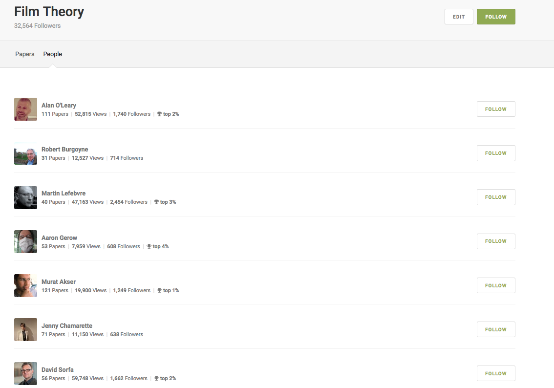 Towards the top of the page, notice you’re on the “Papers” view. There’s also a “People” view that will take you to the profiles of scholars with similar interests. For the search results that appear, take some time to explore the profiles and papers of others who share your interest(s) and follow anyone that looks interesting.